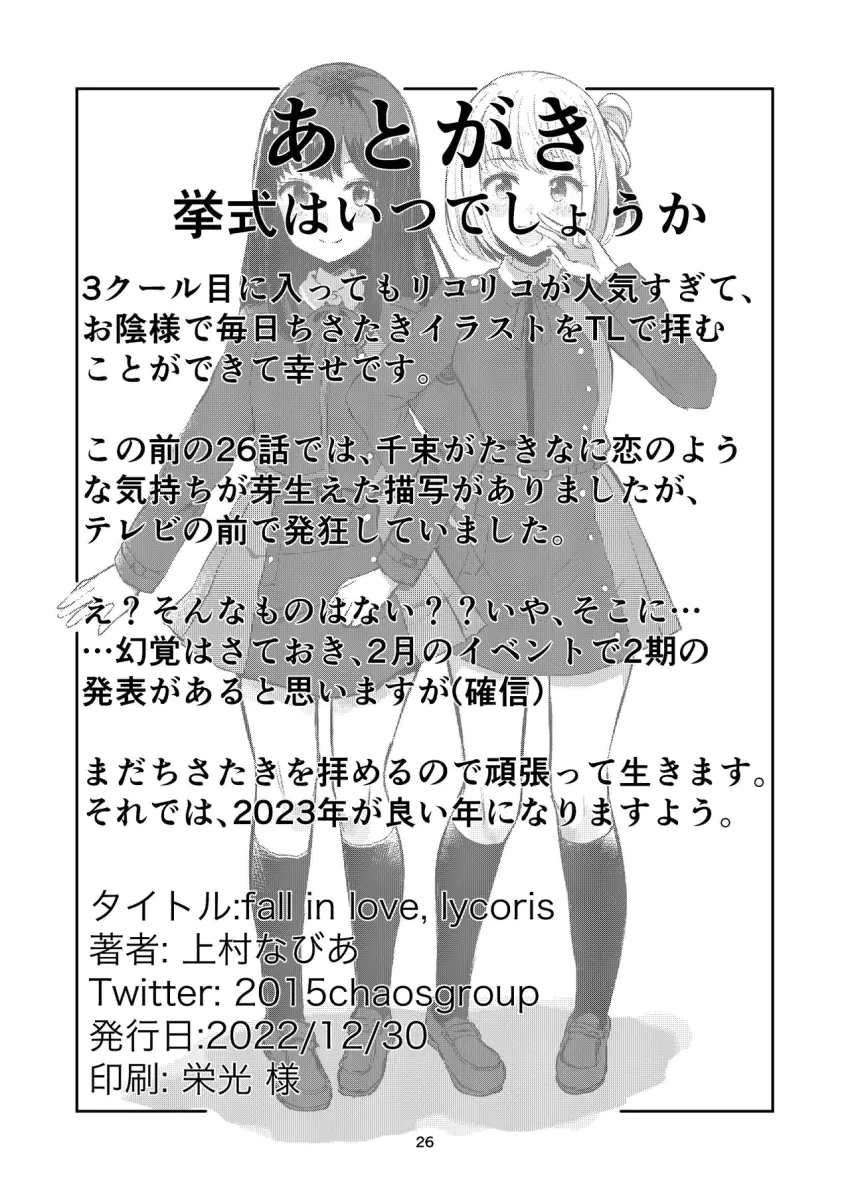 fall in love, lycoris (Lycoris Recoil) - Oneshot