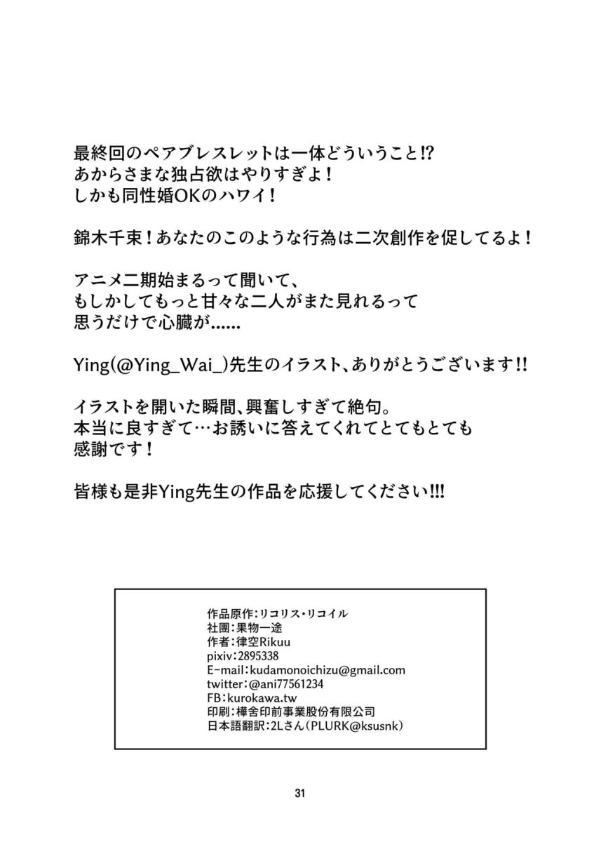 Watashi no Yome ni Narimasenka? (Lycoris Recoil) - Oneshot